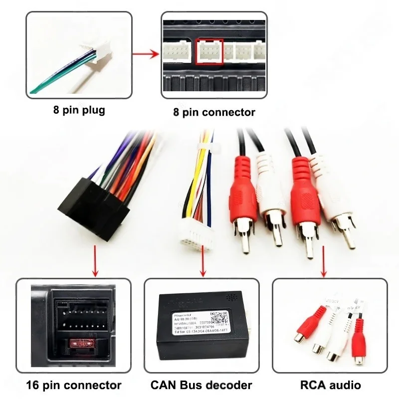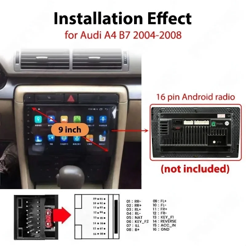 Dashboard Panel Frame for Audi A4 B7 2004 - 2008, Radio Wiring Harness Adapter, CAN Bus Decoder, for 2 DIN 9" Android Multimedia